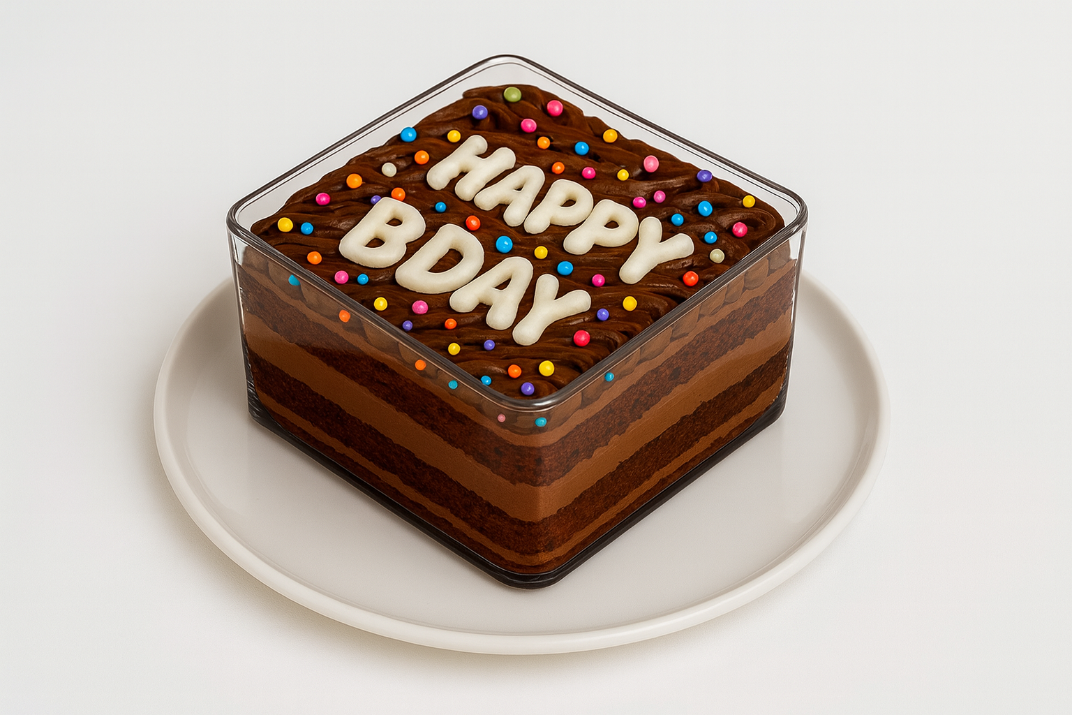Delicious chocolate sponge layered with cream and topped with colorful sprinkles and “Happy B’Day” message. A perfect mini birthday cake in a handy tub.