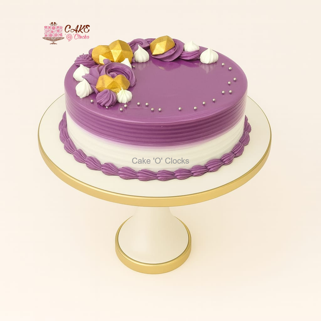 A soft sponge layered with luscious blackcurrant cream, decorated with golden gems. A royal treat for berry lovers.